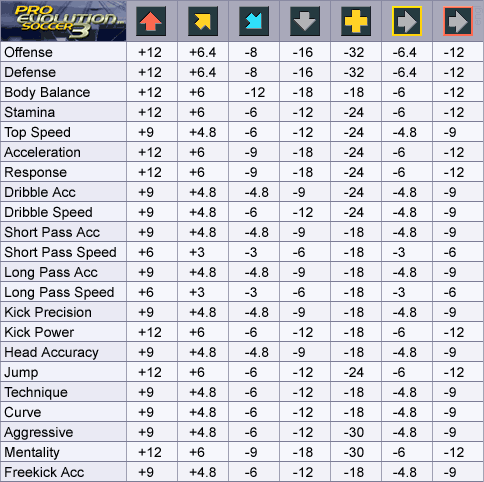 to view the players' form arrows. The form arrow affects the players' stats according to this table (all numbers are percentages):